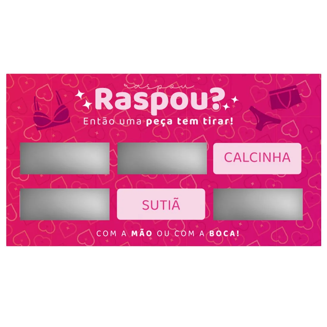 Está sem ideias? Quer inovar e fazer algo novo na relação? A raspadinha é ideal para te ajudar. Faça brincadeiras, deixe que a sorte decida por você o que fazer e onde.